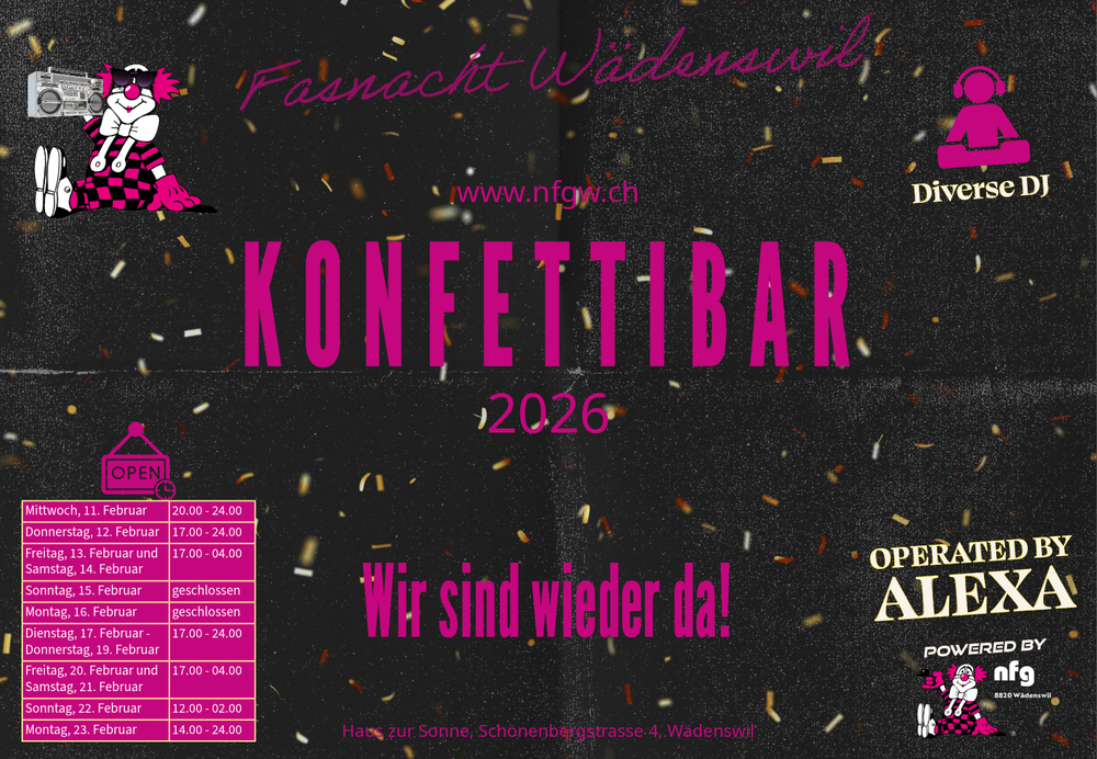 Gmüetlich bi dä Alexa eis go zieh? Ab hüt isch s Konfetti wieder offe!