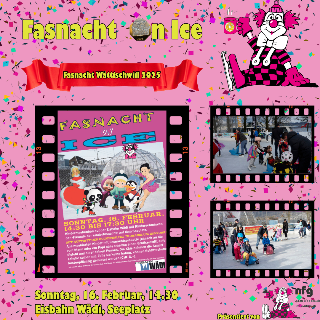 Alle maskierten Kinder mit Fasnachtsplakette (du kannst auch jene vom Mami oder Papi nehmen) erhalten einen Gratiseintritt aufs Eisfeld und einen feinen Punsch.