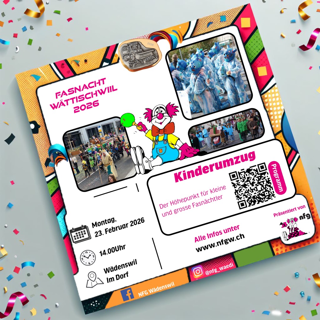 teilnehmende Kind bekommt einen Preis. Alle Kinder, welche am Umzug teilnehmen, bekommen einen Zvieri. Für die Eltern gibt es Speis und Trank im Elternkafi. Wir hoffen auf eine rege Teilnahme und freuen uns auf viele Kinder!