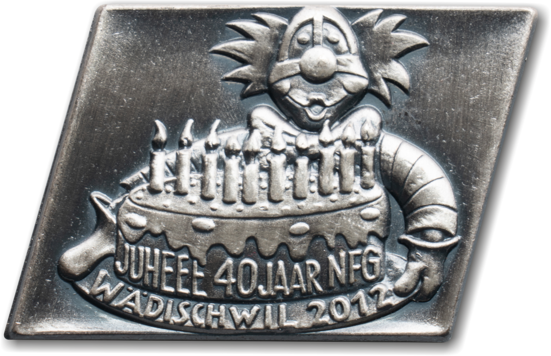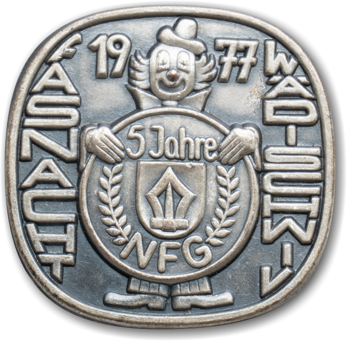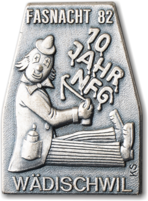 Warum die NFG den Clown als ihr Logo wählte, kann nur mit einem Blick in die Geschichte der Wädenswiler Fasnacht erklärt werden. Es war August Weber (1898-1957) der Wädenswiler Junge, der seine Jugend in der Glanzzeit der X-Gesellschaft in Wädenswil verleben durfte. An den grossen Maskenbällen der X-Gesellschaft trat er jeweils in einem perfekten Clown-Kostüm auf und führte stets einen Vogel mit sich, den er anfangs immer auf dem Kopf trug. Mit diesem Kostüm hob er sich von den Bajazzos, Harlekins und Röllis und anderen gängigen Verkleidungen markant ab. Als nach dem grossen Krieg 1946 die Fasnacht wieder aufgenommen werden konnte, war es der Vorstand der X-Gesellschaft, die sich an Guschti Weber erinnerten und sich im Clownkostüm präsentierten. 1963, die Fasnacht in Wädenswil fristete nur noch ein Mauerblümchendasein, war es die erste Land-Guggenmusik «Märy Mäckers Gugge Bänd» die den Clown zu ihrem Motto erkoren und damit Furore machten.