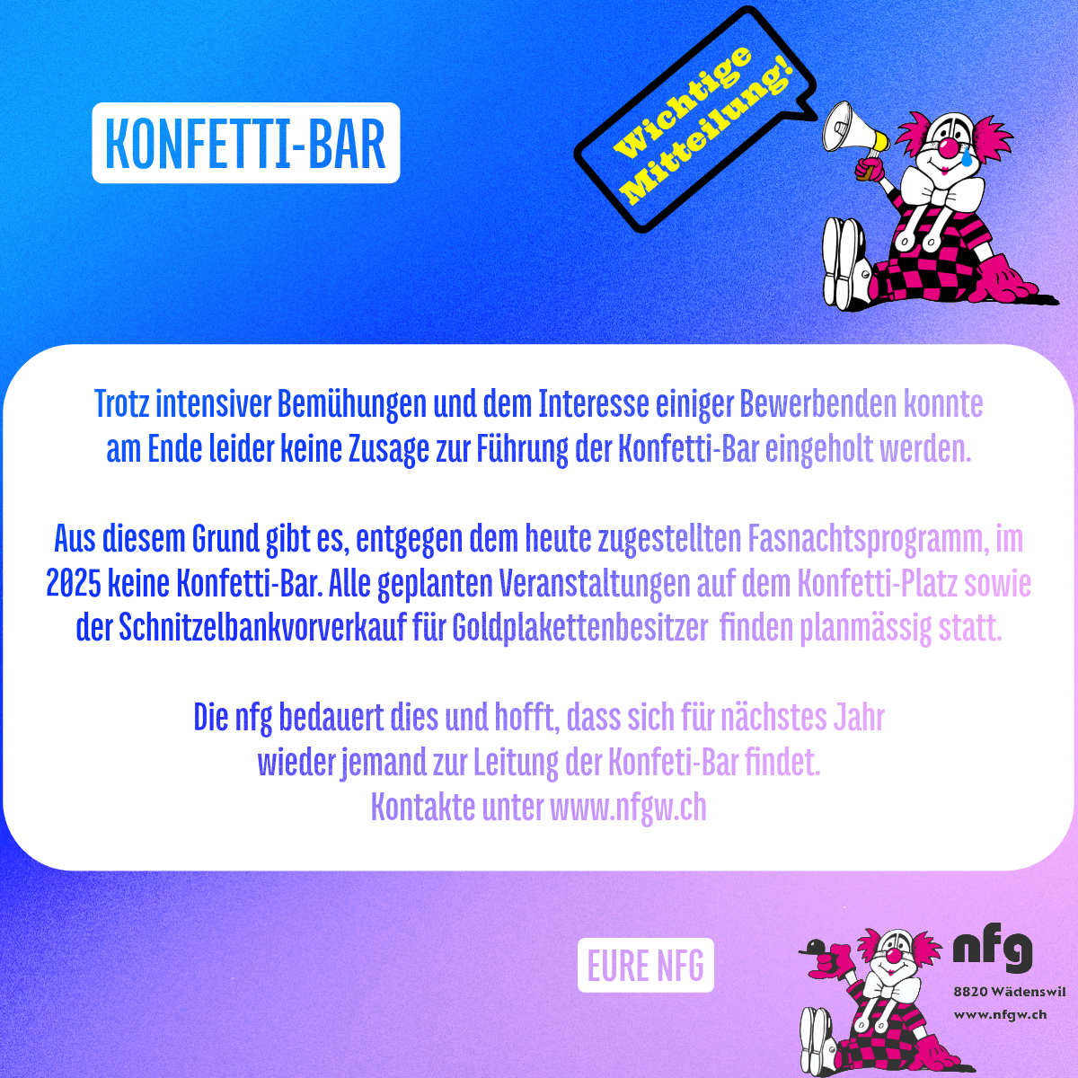 Wichtige Mitteilung - keine Konfetti-Bar
