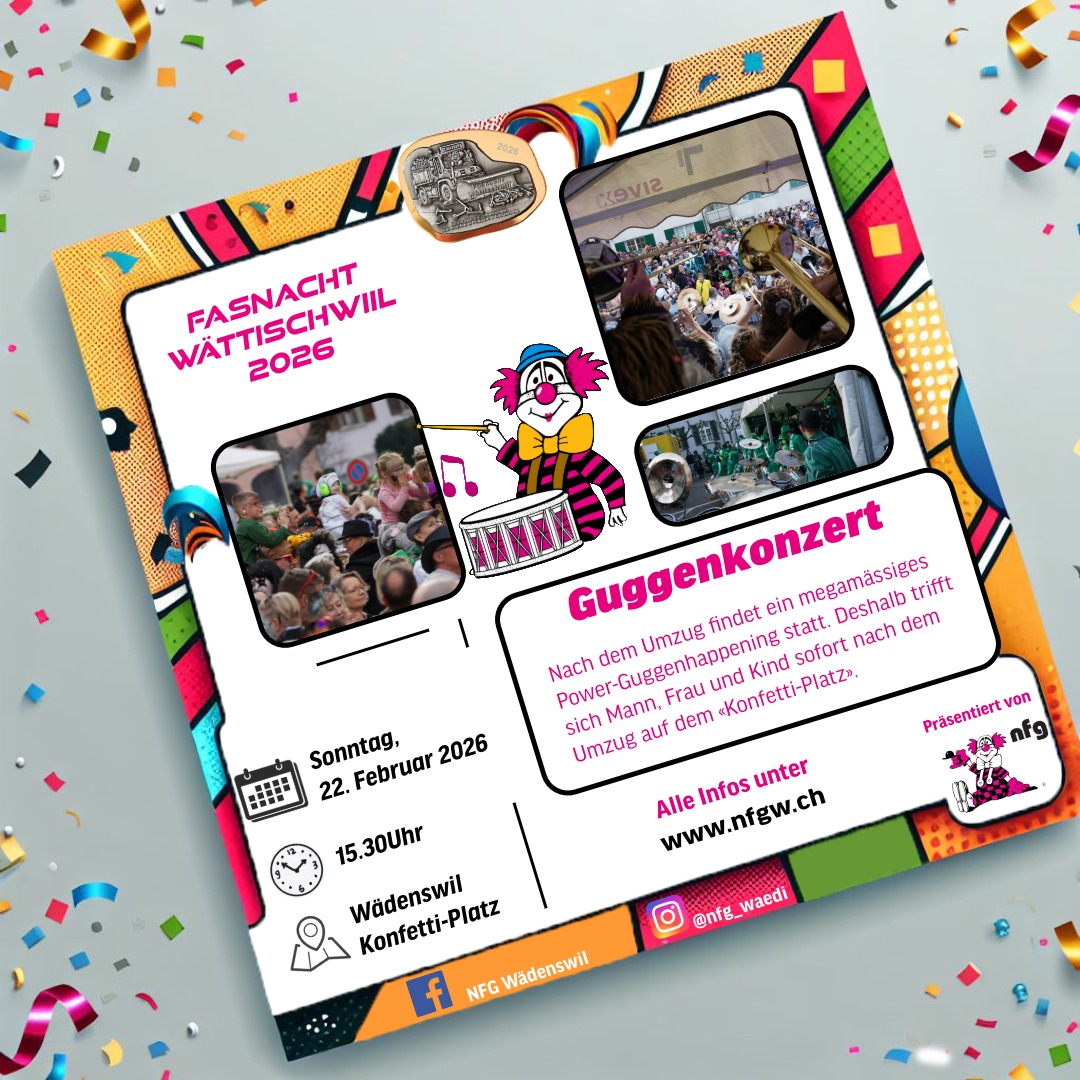 Nach dem Umzug findet ein megamässiges Power-Guggenhappening statt, weil fätzige Guggenmusik in Wädenswil Tradition hat. Deshalb trifft sich Mann, Frau