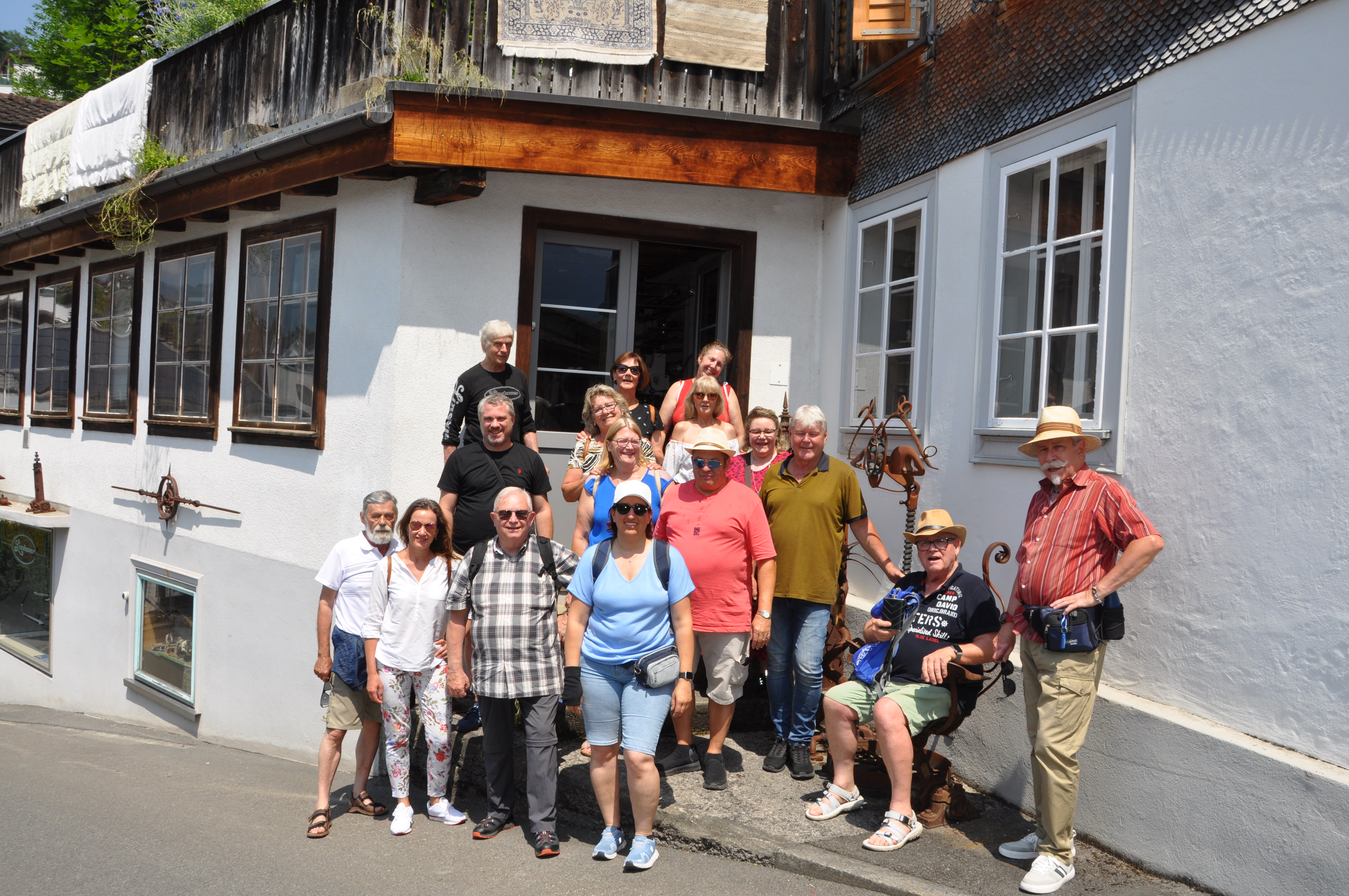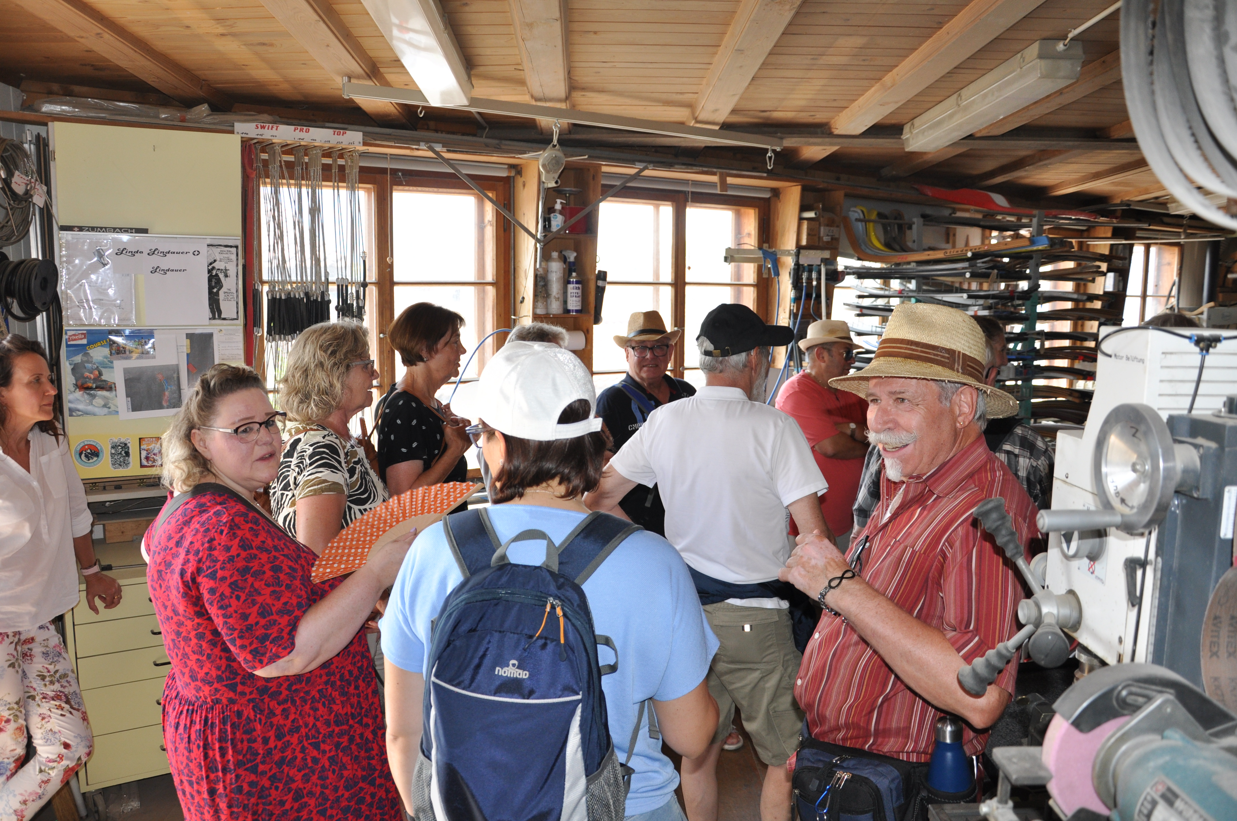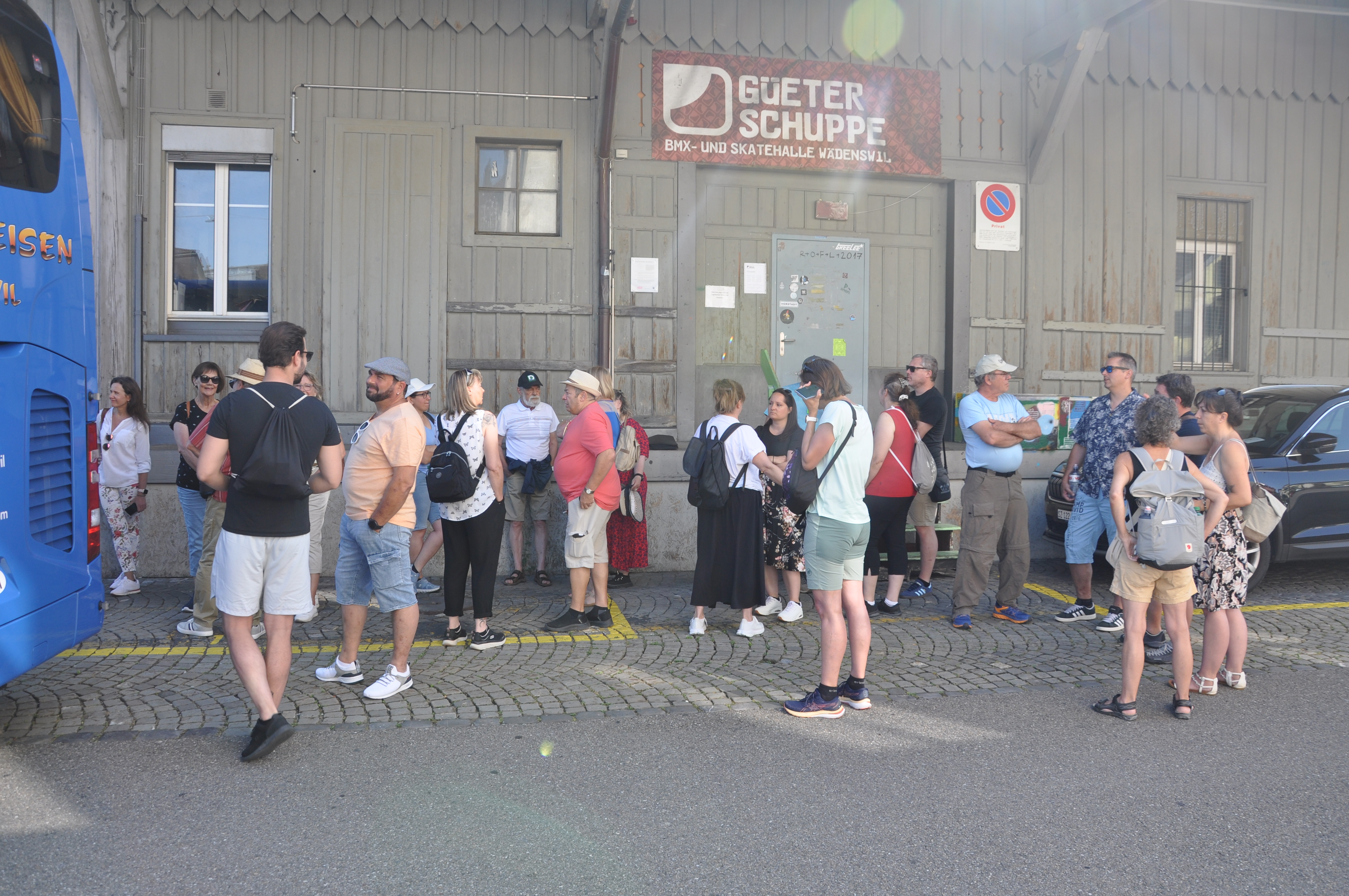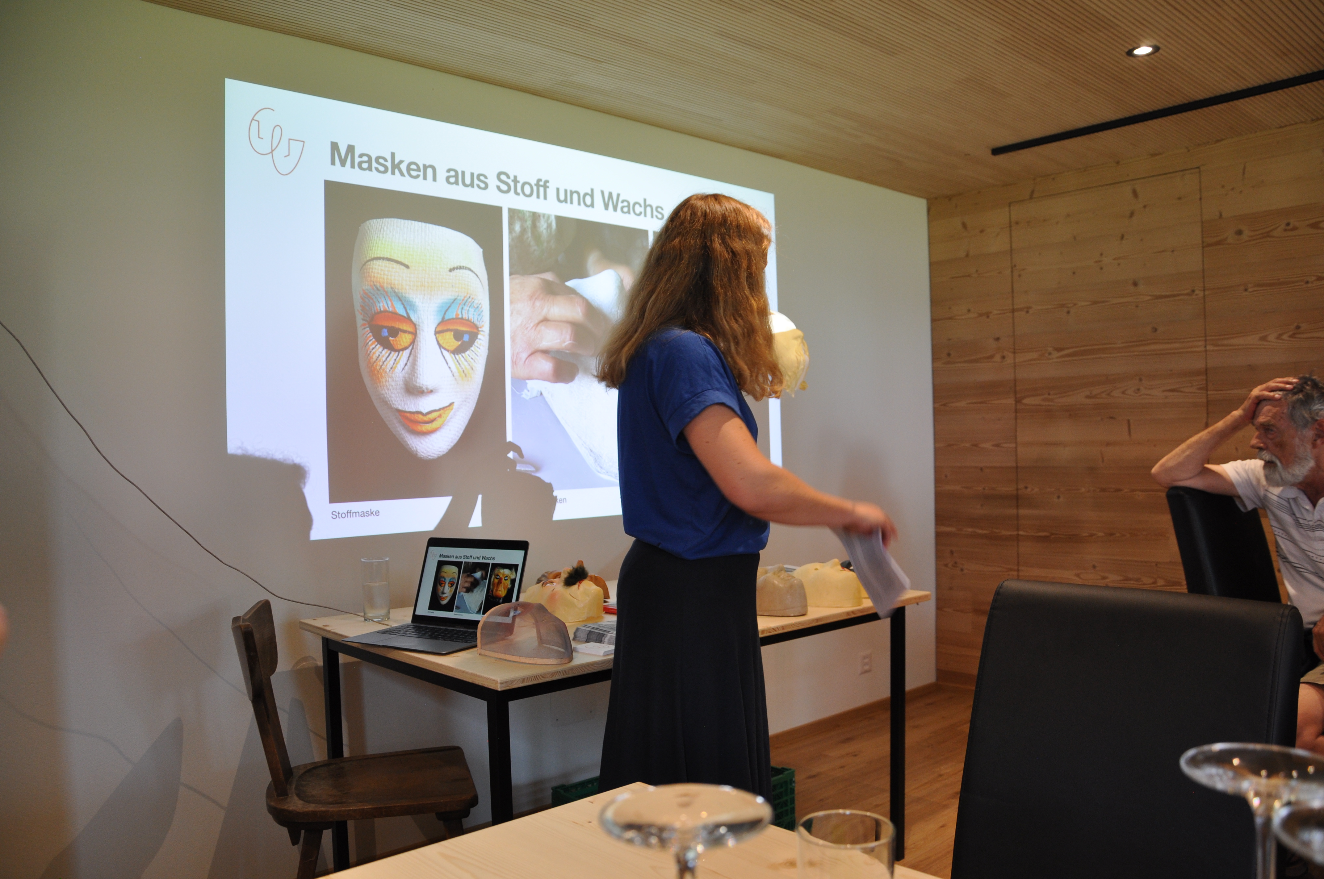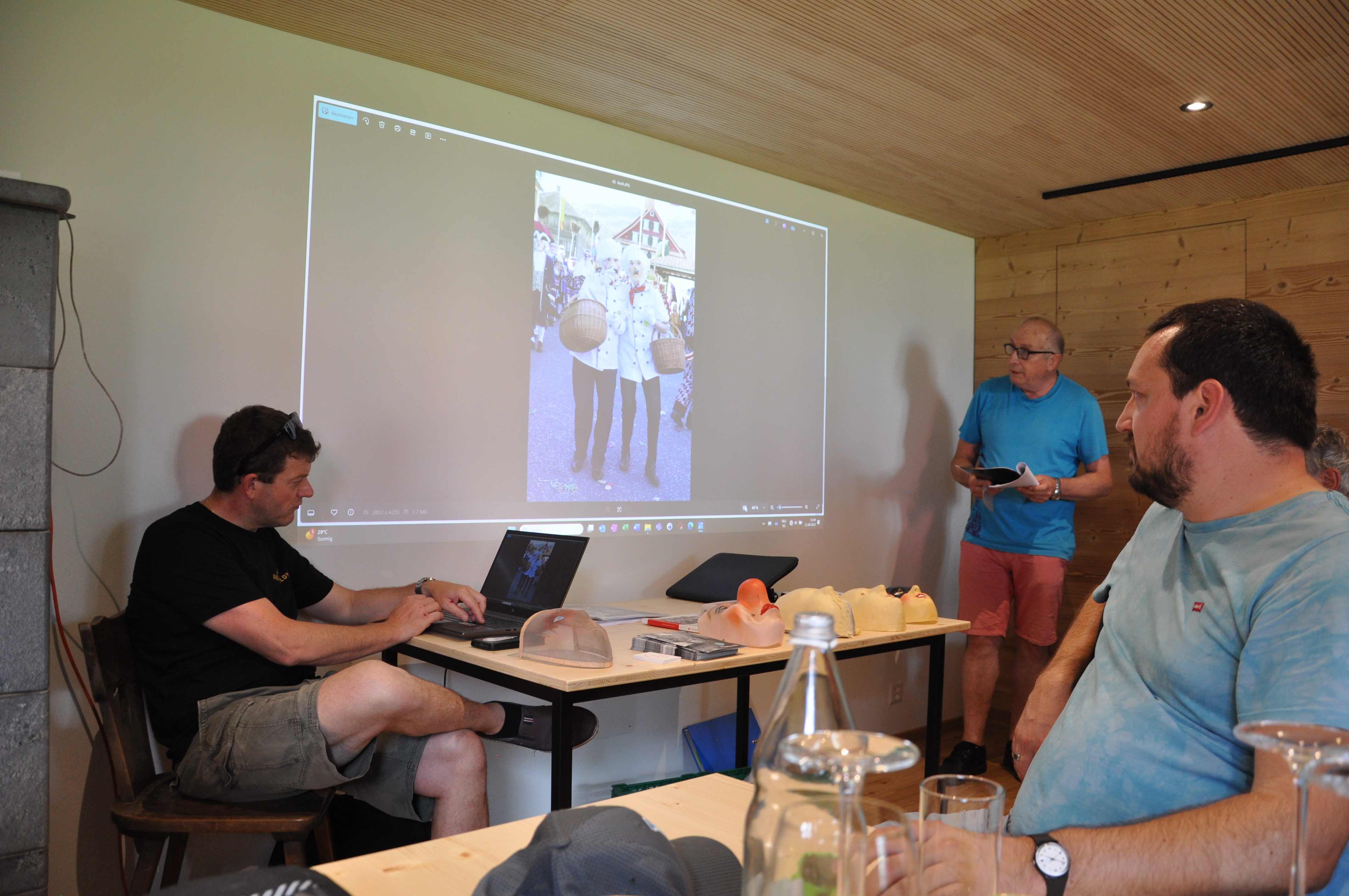 Doch damit war das Wochenende noch lange nicht vorbei. Am Samstag folgte direkt der traditionelle Helferausflug, mit dem sich die NFG bei all jenen bedankte, die mit ihrem Einsatz die Fasnacht in Wädenswil überhaupt möglich machen. Ziel war die Innerschweiz, wo ein abwechslungsreiches Programm auf die Teilnehmenden wartete. In Steinen wurde die Käserei Annen besichtigt, wo spannende Einblicke hinter die Kulissen geboten wurden. Weiter ging es nach Schwyz zu Jo Lindauer, der mit seiner Geschichte und seinem Handwerk im Bereich des Schlitten- und Rodelbaus beeindruckte. Der Nachmittag stand ganz im Zeichen der Fasnacht: Die einheimische Fasnachtsgesellschaft aus Steinen stellte ihre Traditionen vor und gewährte einen Blick in die lokale Fasnachtskultur, rund um Steiner Rott, Gwändli und Nüsseln. Ebenso faszinierend war die anschliessende Präsentation von Susan Steiger, die ihre kunstvoll gefertigten Wachsmasken zeigte und deren Entstehung erklärte.